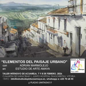 Estaré el 7 y 8 de febrero en ESTUDIO DE ARTE AMAYA, en Vitoria, impartiendo un nuevo curso de paisaje urbano en el que comenzaremos con sketches y bocetos iniciales para ir entrando en materia y descubriendo cómo representar los principales elementos del paisaje urbano (edificios, perspectivas, vehículos, figuras en movimiento, señales de tráfico…).